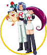 Equipe Rocket é o time de vilões no mundo de Pokémon. Seu plano é roubar Pokémons fortes para dominarem o mundo, porém como vilões planos sempre fazem maldades que afetam a vida de todos. Normalmente têm raízes em todos os cantos do mundo. Querem pegar os pokémon mais fortes, não se importando com os sentimentos deles. Eles tem uma saudação (a dupla inimiga de Ash, a principal do anime, Jessie e James) e são, no anime,os únicos, além de Cassidy e Butch, a usarem lemas,que foram modificados no início de Batalha da Fronteira e Diamante e Pérola.